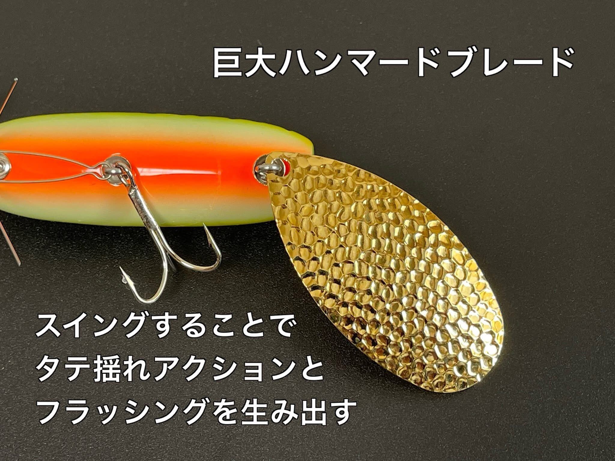 またドッグウォークアクションでは、巨大ハンマードブレードがジョイントルアーの様にボディとは反対に動き、フラッシングを伴ってアピール。