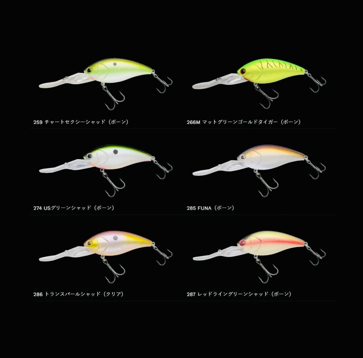 ハードベイトの潜行深度としてはほぼ限界と言える水深5mをオーバー。しかもその水深をドラッギングやニーリングではなく、通常のキャスティングでトレースできる優れた潜行能力を持つディープクランクが「ショット オーバー5」です。「オーバー4(トリプルフルサイズ)」と同じ75mmのボディでありながら14lbラインで5.4m、10lbでは6.0mへ到達させることが可能。さらにボディサイズを抑えたことで巻き抵抗も低減し、広大なエリアでも引き続けられる軽いリトリーブ感を獲得しています。もちろん「オーバー4」同様に、安定姿勢でロングキャストを可能にするキャスティングフィンを採用し、ウィードやソフトボトムへの刺さりを低減するノンスタックビル仕様。アクションは水質を選ばないオールコンディション対応を狙ったタイトウォブルロール。しかもボディとリップとを別成型し組み合わせる構造を採用し、カラーによってボディマテリアルをボーンホワイト系ABSとクリア系ABSを使い分け、これによりカラーに伴ってアクションやサウンドの差も生まれ、アピールの強弱という引き出しをさらに広げます。効率の良い釣りがしにくいディープウォーター攻略の中で、圧倒的にスピーディーな展開が可能なディープクランキング。その優位性が「ショット オーバー5」でさらに際立ちます。
