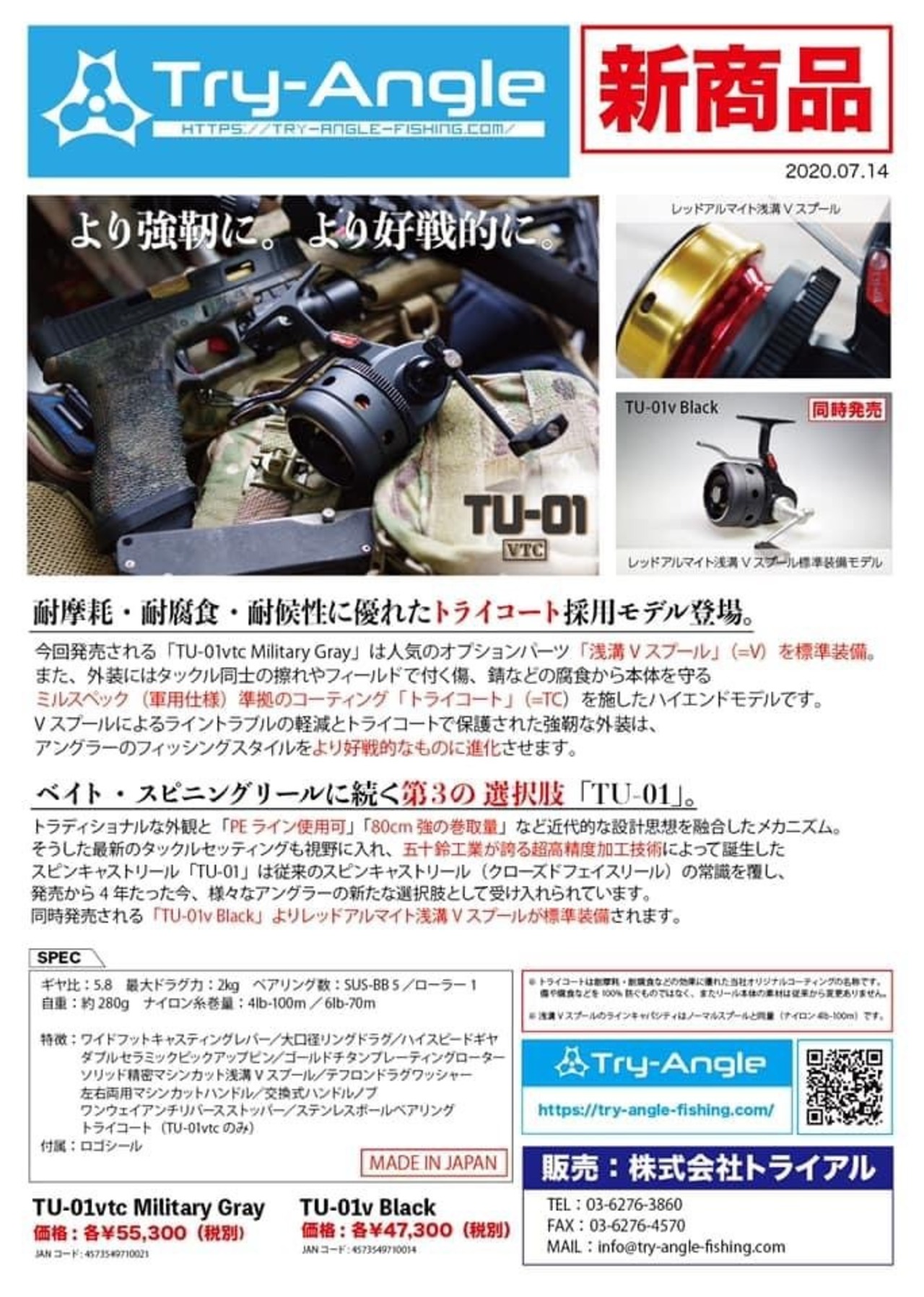 Try-Angle . TU-01vtc. Military Gray【浅溝Vスプール】軍用仕様ハイエンドモデル