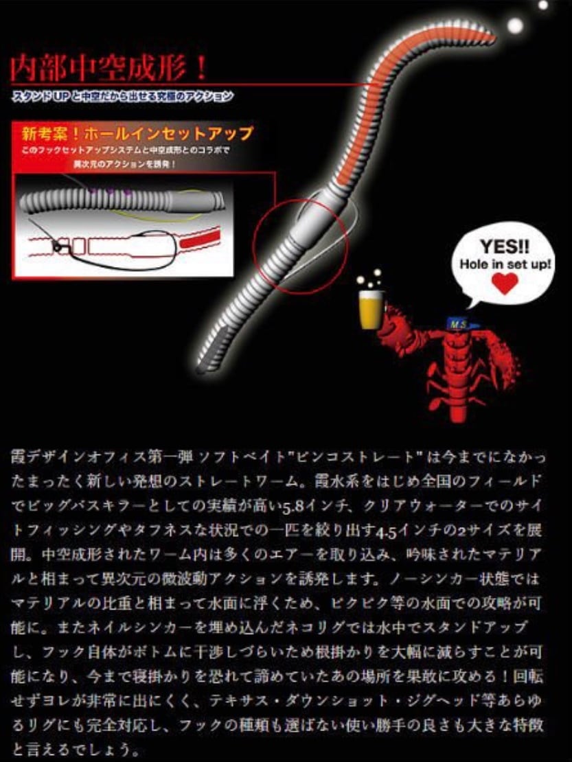 中空成形されたワーム内は多くのエアーを取り込み、吟味されたマテリアルと相まって異次元の微波動アクションを誘発します。