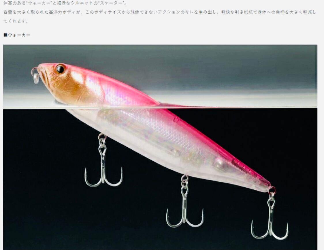 水押しの強い“ウォーカー”と軽快なスケーティングをみせる“スケーター”がラインナップされ、フィールドの状況にアジャストさせることができます。マグナムサイズからなるアクションのもたつきは、内部容量を拡張させた高浮力化によりキレのあるアクションに変換。またサウンドタイプには不規則なアクションと独自サウンドで惹き付けるバリアブルバランサーシステムにより、高い集魚効果を発揮してくれます。