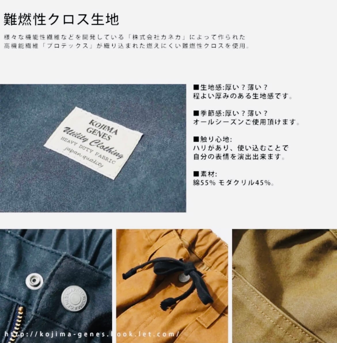 難燃性クロス生地で作られた程よい厚みのある生地感のパンツでオールシーズンご使用頂けます。