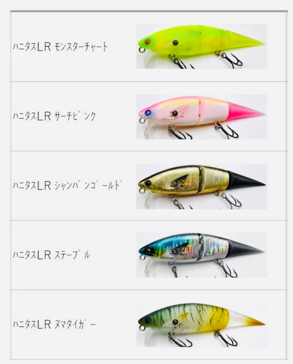 ハニタスシリーズ初となるリップ付き、さらに左右ヒレ独立構造のクウィングシステ ム (PAT) 搭載の「ハニタスLR」。 ハイピッチウォブリングアクションが逃げるベイ トフィッシュの波動を再現し、 クイック操作でのレンジ切替に加え、 左右への遊泳 によりオーバーハングや護岸に逃げ込むベイトの動きまでも簡単に演出することが できます。 タックルやフィールドを選ばないサイズ感で、あらゆるシチュエーション に対応する変幻自在の 「新感覚ジョイントベイト」 をお楽しみください。