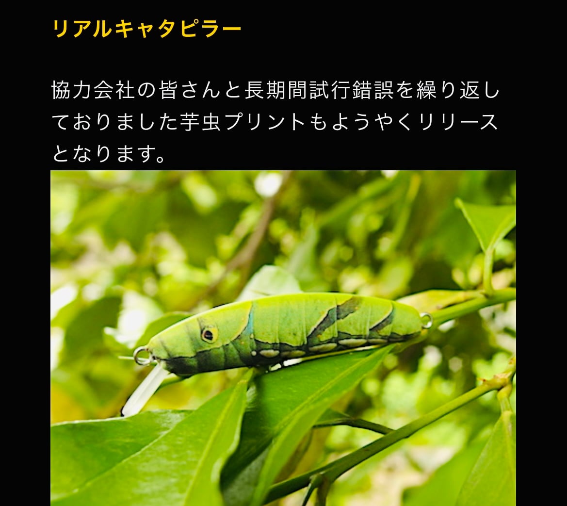 バルサウッドにも匹敵するサイコウッド素材から生まれたsuming-50cwは、タングステンウェイトを搭載し、ABS製のミノーにはない動きのキレと水噛みを生み出します。加えて、このリアルプリント仕様は、魚達に関わる様々な生物をリアルに表現。テレストリアル系を中心に、見せて誘う事をコンセプトとしたアイテム達です。