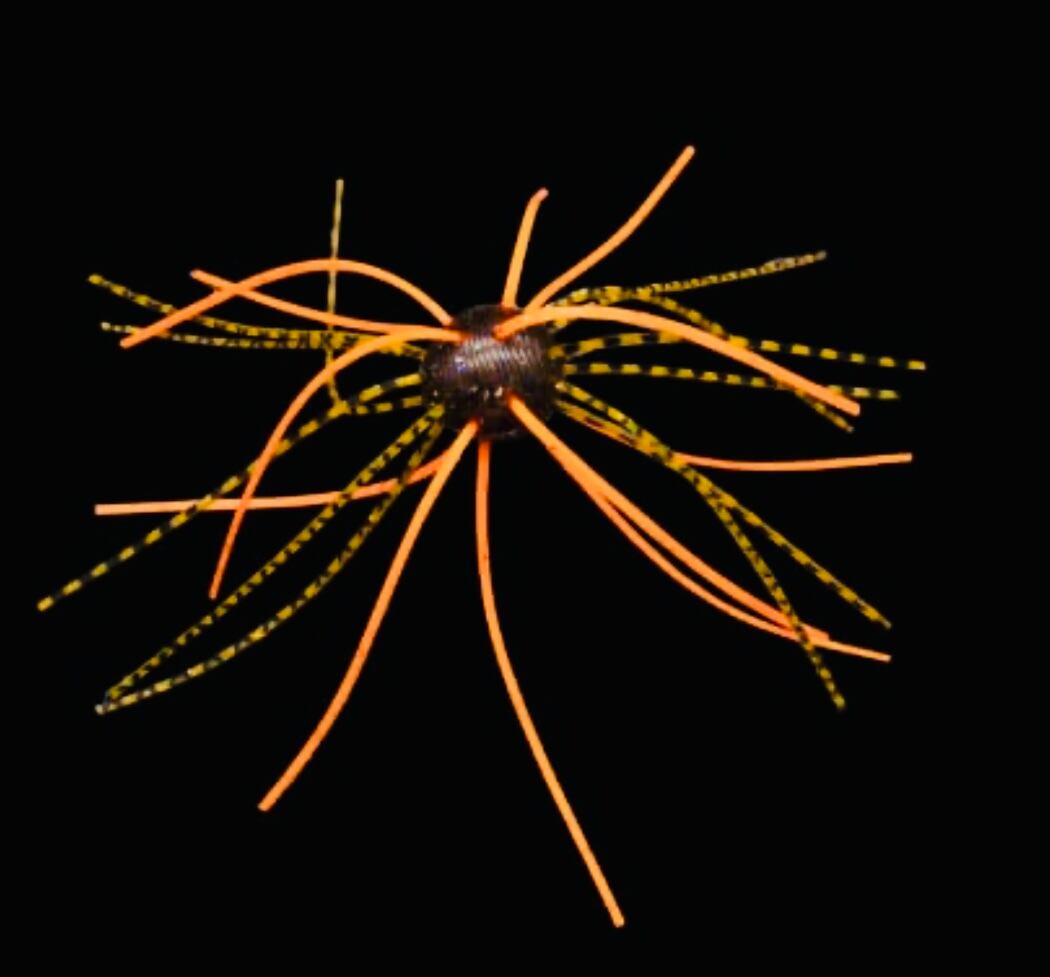 ボディーから四方八方に伸びたラバーが水面、水中でアピール。
