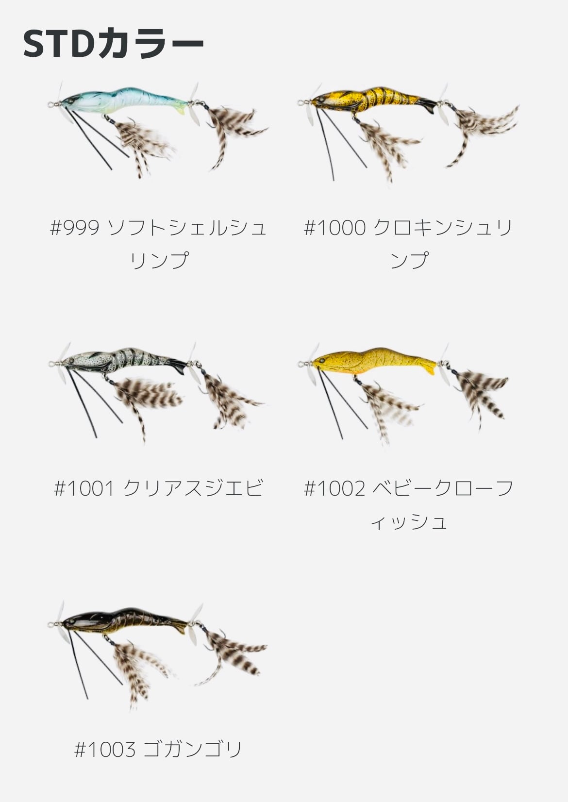 フェザーフックにも意味があり、フロントはエビの腹肢を表現しながらリアのフェザーと共に支定した水平姿勢キープに貢献。